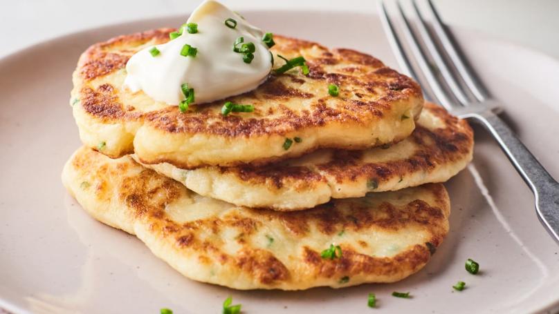 Во тавче загрејте масло и пржете ги палачинките со компири додека не поруменат од двете страни.
