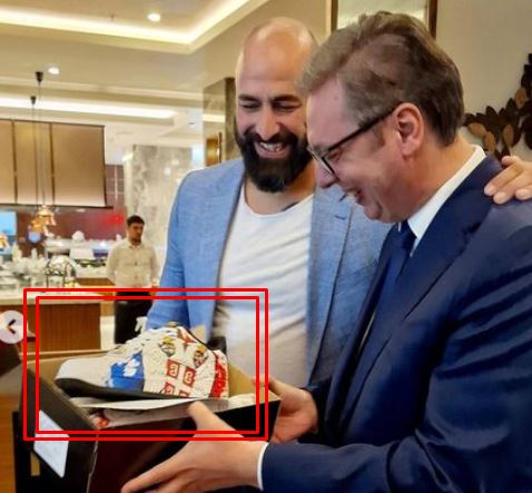 Четири С, многу убав македонски идентитетски поклон од претседателот на Македонската кошаркарска федерација до претседателот на Србија.