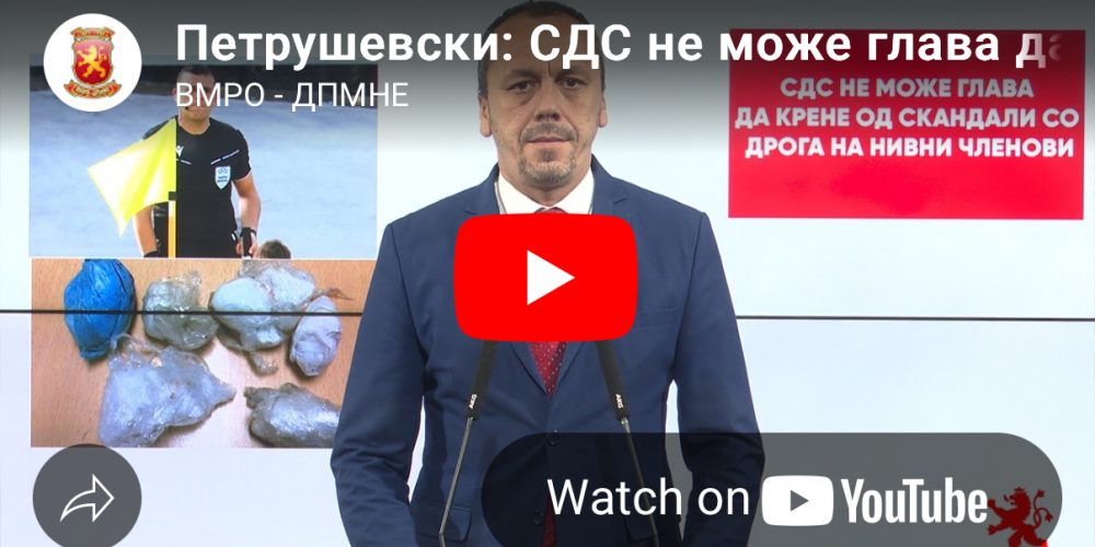 „СДС не може глава да крене од скандали со дрога на нивни членови. Нов скандал на повидок од страна на член на СДС, кој пред 2 дена бил фатен со дрога“ рече денеска на прес-конференција пратеникот на ВМРО-ДПМНЕ, Бране Петрушевски.