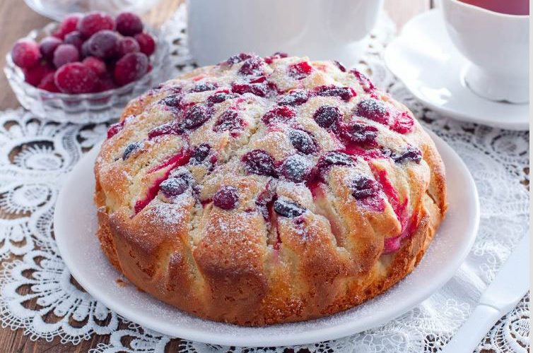 Во голем сад измешајте ги исецкани јаболка, шеќер, пченичен скроб, рендана кора од лимон, цимет, брусница и сол.