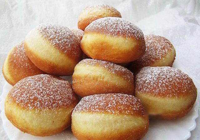 Оставете го тестото да отстои 15 минути. Со подмачкана лажица го вадиме тестото и формираме крофни, па ги пржиме во тава на поголема количина масло. Готовите крофни ставете ги на салфетка за да се впијат вишокот маснотии.