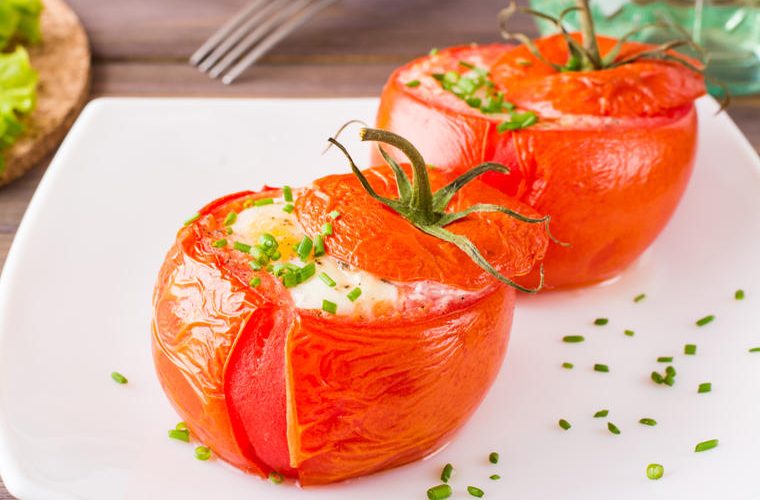 Во секој домат ставете две лажици од смесата и покријте со парче моцарела.