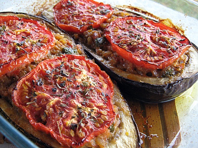 Едноставен, посен летен ручек. Прво модрите патлиџани ги миеме, им ги отстрануваме дршките и ги сечеме по должина секој на два дела. Ги издлабуваме им ја вадиме внатрешноста, ги посолуваме, ставаме малку зејтин и ги ставаме да се печат во рерна на 180 степени околу 15 минути колку да омекнат. За тоа време на тава запржуваме кромид, пиперка и морков. Потоа го додаваме и внатрешниот дел од модриот патлиџан исечен на коцки. Повторно запржуваме и ја додаваме и пченката. Посолуваме, додаваме свеж исечен босилок и накрај го додаваме и доматното пире од ДМБио. Со ова ги полниме малку запечените модри патлиџани. Едноставен, посен летен ручек. Прво модрите патлиџани ги миеме, им ги отстрануваме дршките и ги сечеме по должина секој на два дела. Ги издлабуваме им ја вадиме внатрешноста, ги посолуваме, ставаме малку зејтин и ги ставаме да се печат во рерна на 180 степени околу 15 минути колку да омекнат. За тоа време на тава запржуваме кромид, пиперка и морков. Потоа го додаваме и внатрешниот дел од модриот патлиџан исечен на коцки. Повторно запржуваме и ја додаваме и пченката. Посолуваме, додаваме свеж исечен босилок и накрај го додаваме и доматното пире од ДМБио. Со ова ги полниме малку запечените модри патлиџани. Одозгора ставаме кругови од исечен домат, врз нив босилок и ги враќаме во рерна уште 20 минути.