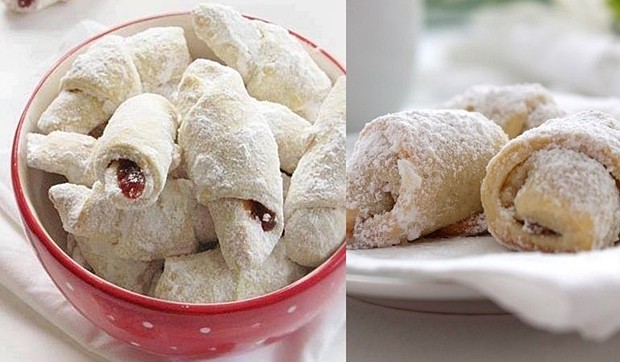 Врелите кифли испрскајте фи со малку вода и прекријте ги со крпа, за да омекнат. Кога ќе се оладат посипете ги со шеќер во прав и ставете ги во сад со поклоп, па ставете ги во фрижидер за да ја задржат свежината за следниот ден.