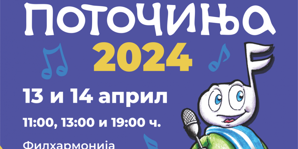 На 13 и 14 април во Македонска Филхармонија ПОТОЧИЊА по 21. пат ќе потечат и ќе донесат многу радост и насмевки на детските лица. Се најавуваат нови детски хитови и голема забава, а со игра и песна низ фестивалската приказна децата ќе ги води актерот Мартин Јорданоски во маската на популарниот водител Поки.
