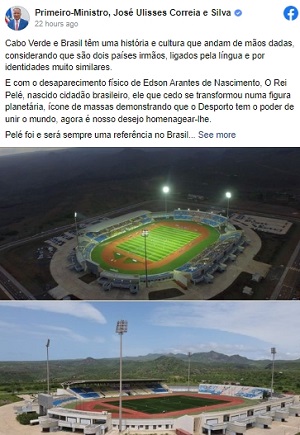 Премиерот на Зелен ‘Рт, Жузе Улисес Куреја и Силва, потврди дека стадионот „Насионал де Кабо Верде“, кој има капацитет од 15.000 седишта и каде домаќин е репрезентацијата на оваа земја, ќе биде именуван како стадион „Пеле“ во чест на легендата на светскиот фудбал.