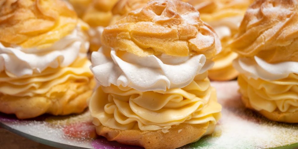 Зовријте вода и масло, додека се варат додадете брашно и прашок за пециво, брзо измешајте и веднаш тргнете го од оган. Додадете ги јајцата едно по едно, внимавајте секое добро да се измеша со тестото пред да го додадете следното. Извадете го тестото со шприц или лажица и наредете го на плех обложен со хартија за печење. Се печат на 180 степени додека убаво да нараснат и да добијат убава златна боја.