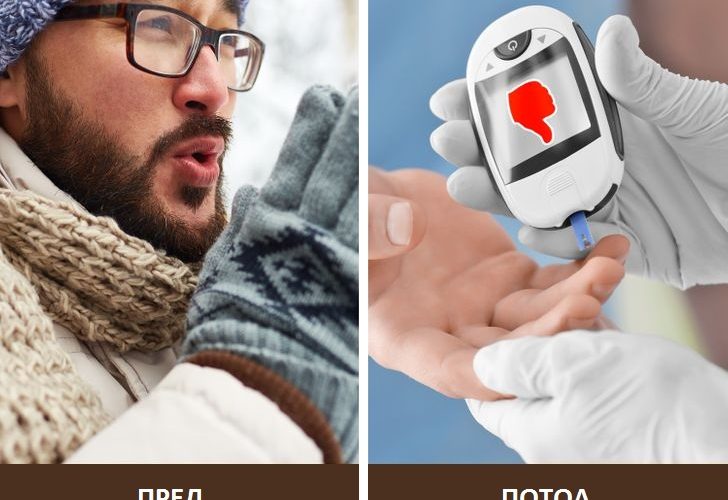Студеното време го тера вашето тело да ослободува хормони на стрес кои го зголемуваат нивото на шеќер во крвта. Кај многумина, како што паѓа температурата, така се зголемува нивото на шеќер во крвта затоа што кога е студено, помалку сте мотивирани да одите надвор и да вежбате. Бидејќи физичката активност го намалува шеќерот во крвта, лекарите препорачуваат да вежбате дома во зима за да го држите нивото на шеќер под контрола.