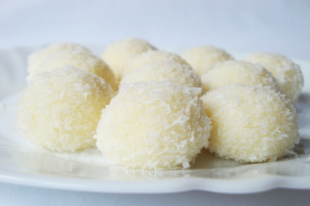 Се тркалаат во кокос и се ставаат во фрижидер да се стегнат.
