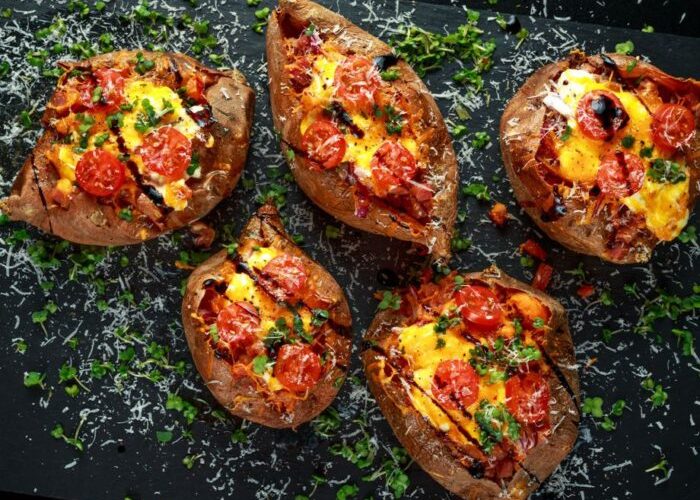 Доколку сакате да ги изненадите семејството и пријателите со вкусно јадење, понудете им двaпати печен сладок компир полнет со сланина, сирење и билки.