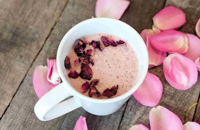 Сите состојки се мешаат во тенџере на средна температура додека смесата не стане целосно топла и пенеста. Истурете ја смесата во чаша и по желба украсете го вашето месечево млеко со ливчиња од роза.