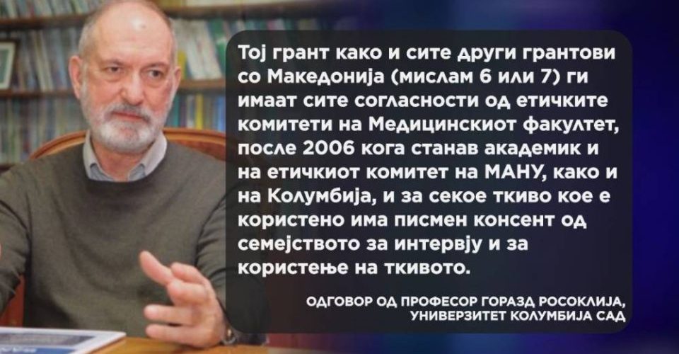 Росоклија: За секое ткиво кое е користено има писмен консент од семејството