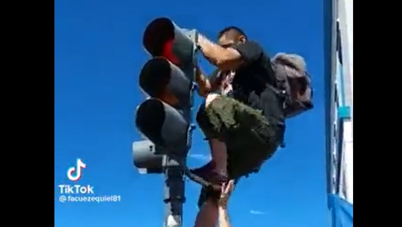Аргентинските фанови во борба за поглед од повисоко не размислуваат што прават, еден навивач се повреди сакајќи да се качи на семафор.