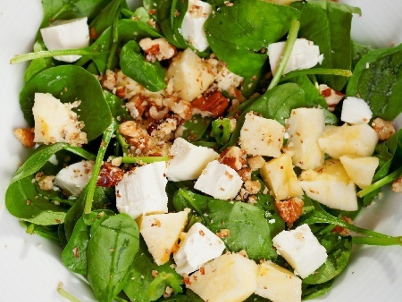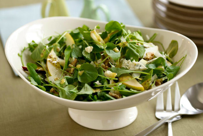 Убава салата која може да биде и замена за оброк. Зеленчукот убаво се мие и се става во чинија. Се додаваат оревите. Згора изронете сино сирење. Се прелива со преливот кој се подготвува така што убаво се мешаат сите состојки. На здравје!Пронајдете не на следниве мрежи: