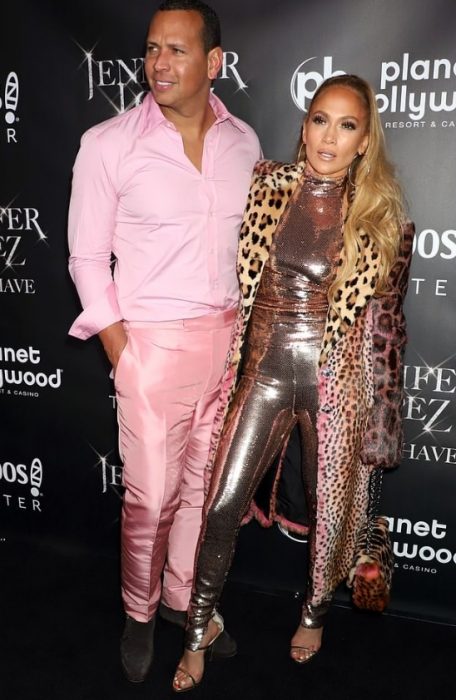 Таа позираше за фоторепортерите пред својот настап во Лас Вегас. Се појави во друштво на своето момче, Алекс Родригез (43), кој носеше розово одело.