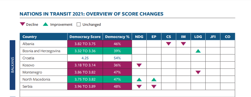 Ако се спореди со времето на СДСМ, во 2021 година Македонија беше прва во регионот, единствената земја со демократски напредок во Западен Балкан односно со втор најдобар резултат во Европа.