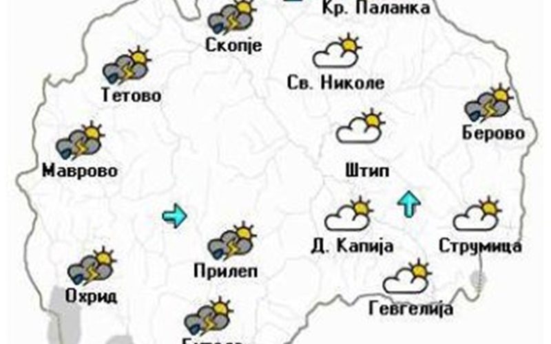 Денеска времето во земјава ќе биде сончево со мала до умерена облачност. Попладне, во западните и крајните источни делови ќе има услови за појава на локална нестабилност со пороен дожд и грмежи која наместа ќе биде изразена во форма на невреме, информираат од Управата за хидрометеоролошки работи. Ќе дува слаб до умерен ветер од западен правец.