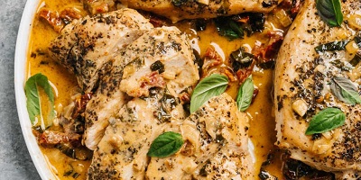 Измешајте ги босилекот, лукот, солта, биберот и сокот од лимон. Во сад ставете ги парчињата месо, прелијте ги со маслиновото масло, па со маринадата. Добро измешајте и пржете на путер околу 15 минути на средна температура.