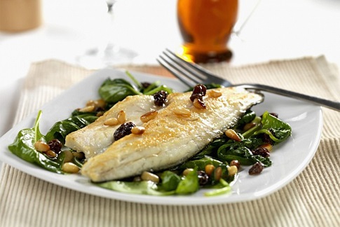 Садот во кој ќе го печете јадењето премачкајте го со маслиново масло, па сипете ја смесата со спанаќ. Рибата посолете ја, зачинете и распределете ја преку спанаќот. Печете на 200 степени околу 25 минути.