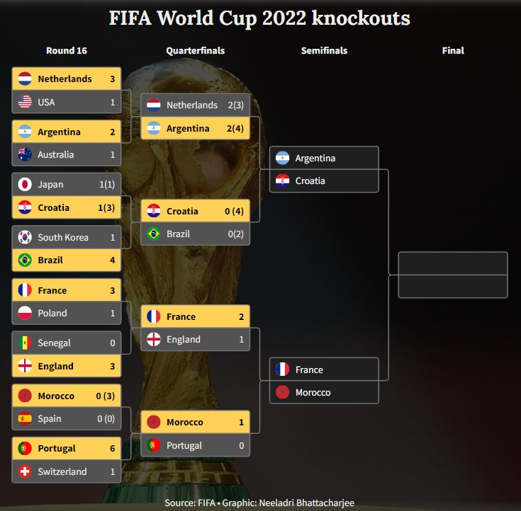 Францускиот тим се пласираше во полуфиналето каде на 14 декември ќе игра со селекцијата на Мароко.