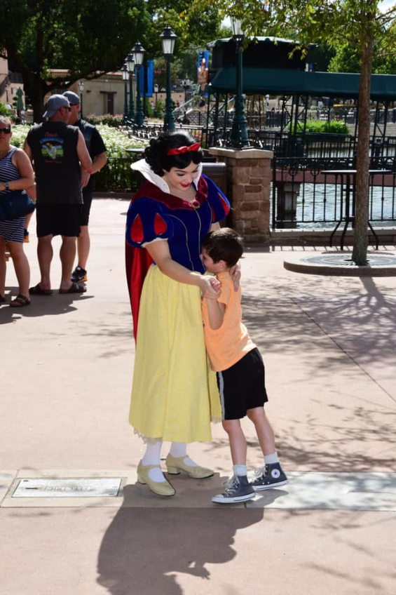 Овие фотографии ми будат многу емоции! Син ми Броди имаше напад на бес. Беше наш ред да се фотографираме со Снежана, а тој не сакаше ни да слушне за тоа. Снежана можеше да процени дека Броди има посебни потреби и го одведе на прошетка подалеку од толпата. Ова беше вистинска магија!