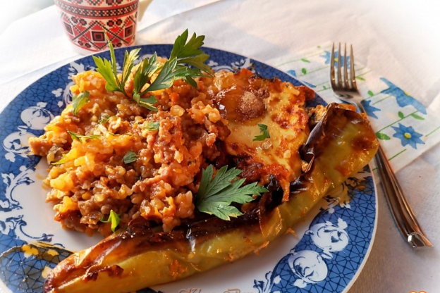 Се става во загреана рерна на 200С да се печи 15-20 минути, па се вади и одозгора му се ставаат пиперките и неколку јајца цели кршени.