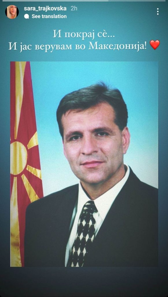 „И покрај сѐ… И јас верувам во Македонија“, напиша Сара.