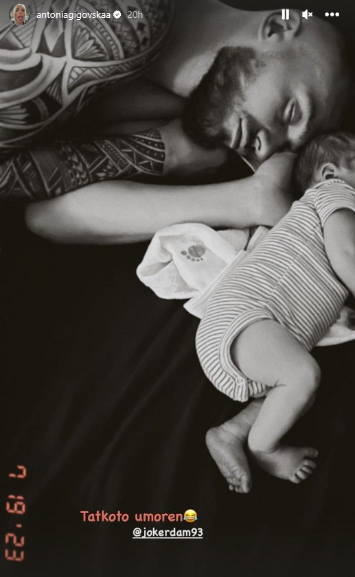 Епа ако не сподели тој, сподели мајката, па Антониа постираше една фотографија на своите Инстаграм приказни која ја објасни целата ситуација. На неа малечкиот Киан мирно спие, а до него, спие и таткото Роберт. Дали „уморен од новиот живот“, од неспиење ноќе, ако бебето ги буди, што не би требало да му е проблем, зашто белким има навика од ноќните свирки да не легнува до доцна во ноќта или од нешто друго, важно…