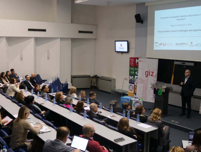 Како да се искористат актуелните трендови на глобалните вински пазари заради подобро позиционирање на македонското вино, како да се зголеми препознатливоста на нашите вина, зошто е исклучително важно воведувањето на географски ознаки на виното и какви придобивки ќе донесе овој процес. Ова се само дел од прашањата за кои се дискутираше на регионалната конференција за вино, што ја организираа здружението „Вина од Македонија“ и Винарската визба „Тиквеш“, во соработка со Германското друштво за меѓународна соработка (GIZ).