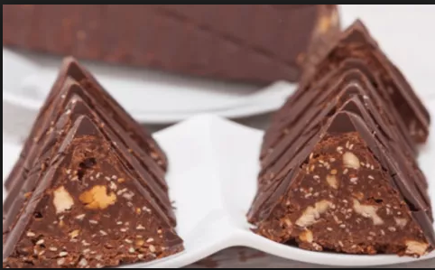 5. Се меша се заедно и додека е топла смесата се нанесува во калап во форма на триаголник, обложен со најлонска фолија, премачкана со масло.
