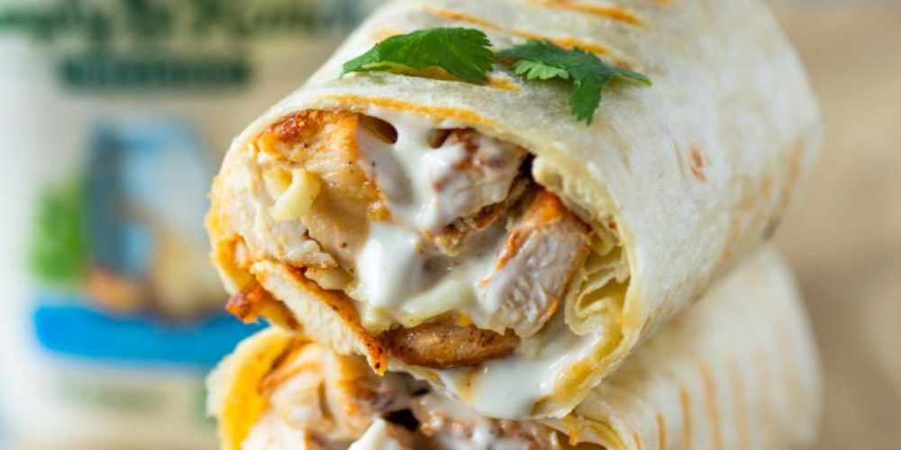 На секоја тортилја ставете пржено месо, парче домат и парче сирење. Наредете ги тортиљите во огноотпорен сад и ставете ги кратко во рерна да се растопи кашкавалот. Послужете топло со сос по ваш избор.