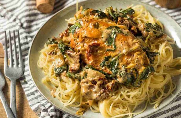 Денес ви споделуваме рецепт кој е типичен за италијанскиот регион Тоскана кој се состои од тестенини со пилешко во кремаст сос со пармезан, спанаќ и сушени домати.