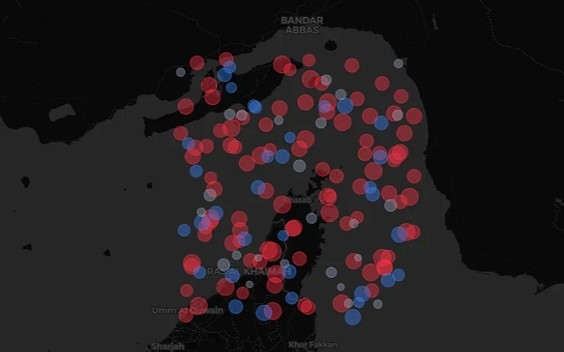 Бидејќи бродовите можат да се движат без AIS сигнали сè додека не се оддалечат доволно од Хормуз, автоматските позициони сигнали беа собрани на поширока област што ги опфаќа Оманскиот Залив, Арапското Море и Црвеното Море за да се откријат оние што можеби го напуштиле или влегле во Персискиот Залив.