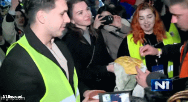 Граѓаните се собраа во центарот на српскиот град Ниш со цел да ги пречекаат студентите кои стигнаа пеш за протестот „Студентски едикт“ на 1 март.