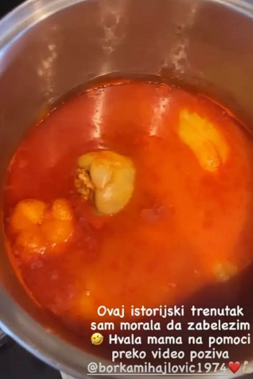 „Морав да го снимам овој историски момент. Благодарам на мајка ми за помошта преку видео повик“, рекла пејачката во видеото на социјалните мрежи, а потоа го споделила својот рецепт за српскиот магазин Gloria.
