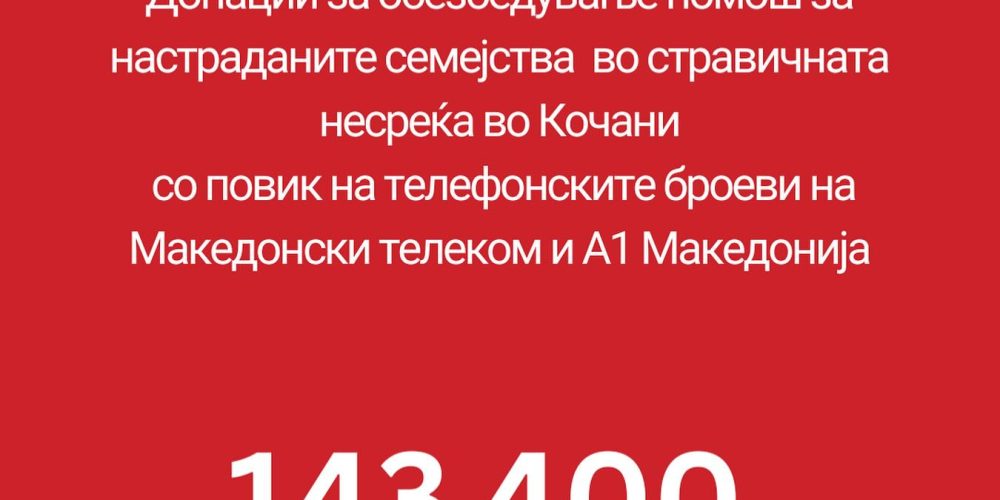 Ве повикуваме сите заедно да ја покажеме нашата хуманост и солидарност за обезбедување помош за настраданите семејства.