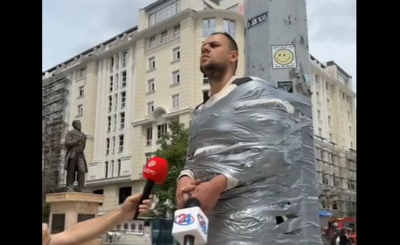 Човекот кој беше залепен на бандерата на Плоштад – „Толку ли брзо нѐ заборавивте?“