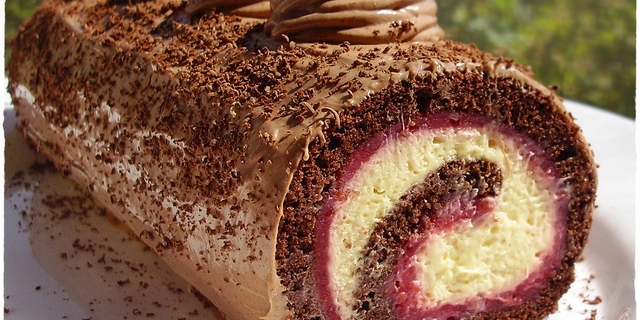 Нанесете ја смесата во правоаголна тава прекриена со хартија и испечете пандишпан. Откако ќе се излади свиткајте го во ролат во влажна кујнска крпа.