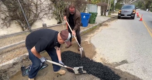 Како што напиша во описот на видеото кое го објави на својот профил на Твитер, му здосадило да чека градот Лос Анџелес да поправи голема дупка на патот, па решил да ги преземе работите во свои раце и да ја заврши работата за нив.