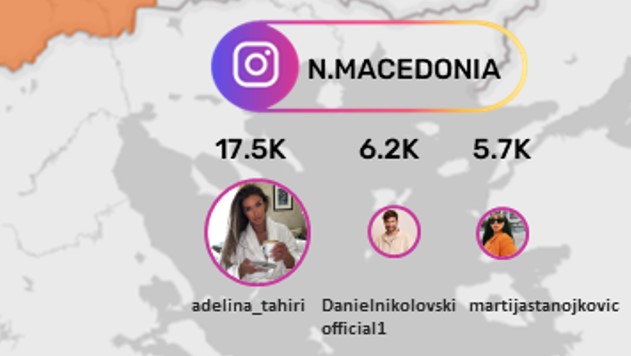 ИНФОГРАФИКОТ ги претставува ТОП 3-те ШоуБиз Инстагрампрофили во 6-те земји од регионот на Западен Балкан, рангирани според соодносот на објави и бројот на реакции на публиката (допаѓања, коментари и споделувања).
