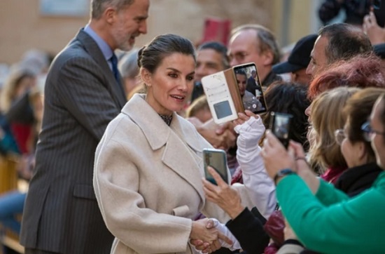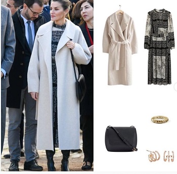Претходно истиот ден, Летиција беше видена облечена во шик бел мантил од & Other Stories додека таа и Фелипе ги обиколуваа музејот и базиликата на болницата со шпанските власти.