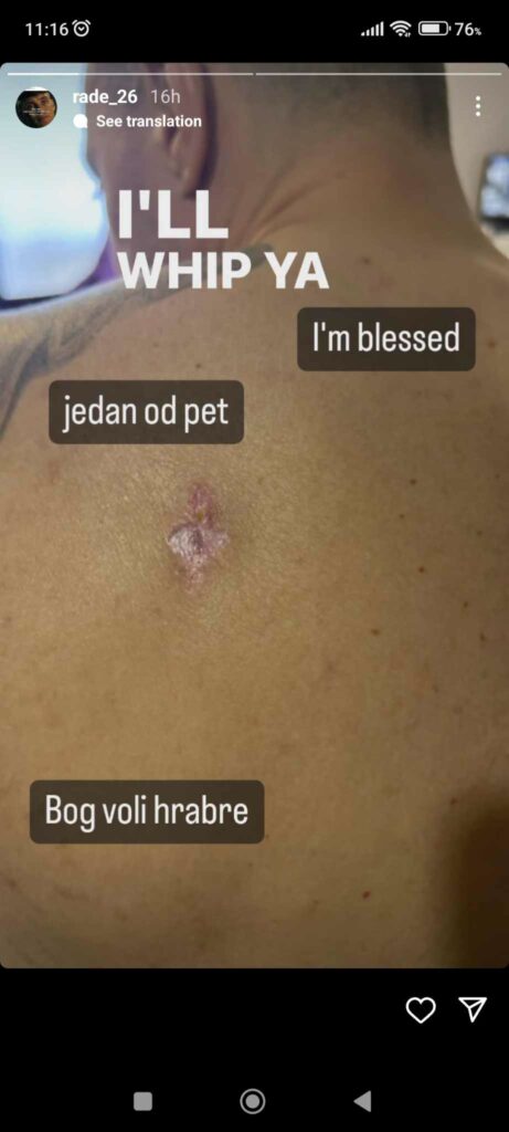 Скопјанецот Раде Трајковски – Штекли кој пред помалку од еден месец беше мета на напад во трговскиот центар „Ист Гејт Мол“ во Скопје на својот Инстаграм профил објави стори со раните кои ги добил од куршумите. Тој објави една од петте прострелни рани со кои се здобил,па во продолжение напиша: