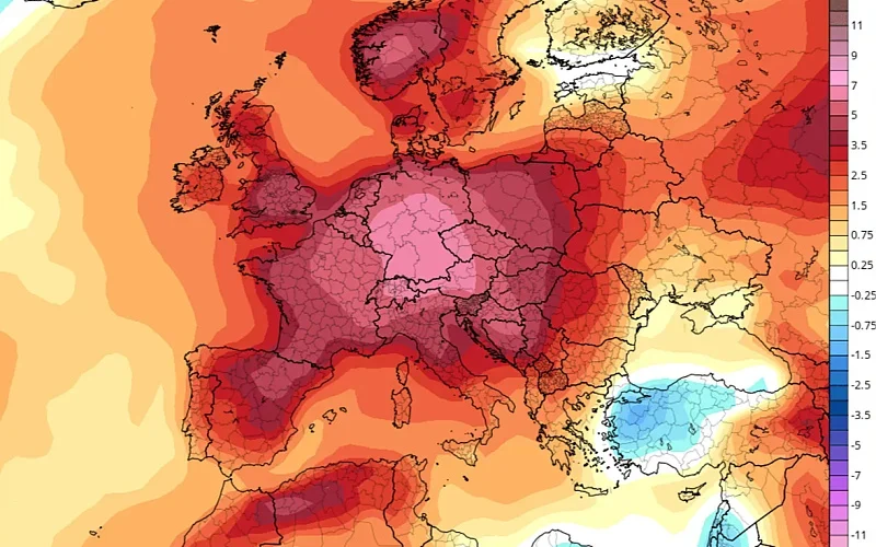 Најзначајни отстапувања од долгорочниот просек за крајот на зимата се очекуваат во Франција, земјите од Бенелукс и Германија, особено во средината на неделата. Дневните максимални температури тука многу веројатно ќе надминат 20 °C и ќе бидат дури 15 степени над нормалата.