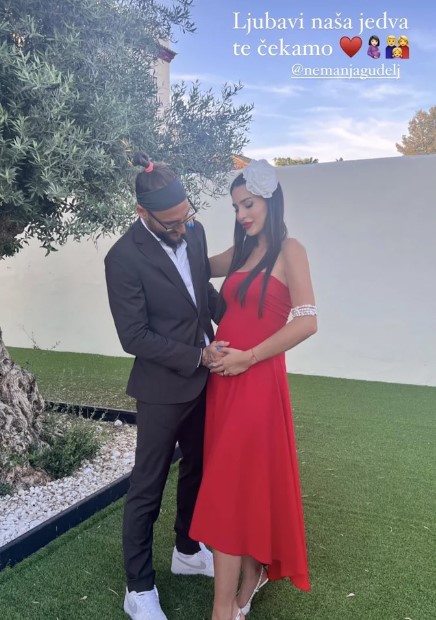 -Љубов наша, едвај те чекаме, напишала Анастасија, а на фотографијата ја гледаме и Гудељ како со насмевка на лицето ја допира нежно по стомакот.