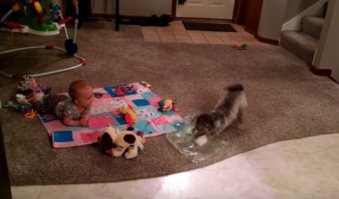 Во видеото ќе виите едно весело кученце, кое сака да поминува време со својата мала сопственичка и да ја забавува со своите „акробации“.На бебето очигледно многу му прија дружењето со […]