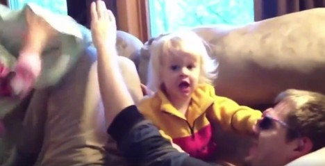 Малото русокосо девојче е вистински телохранител.Додека братот и сестрата го удираа таткото агресивно со перници, таа го бранеше тато и го смируваше. Цело време му велеше: „Во ред е тато, […]