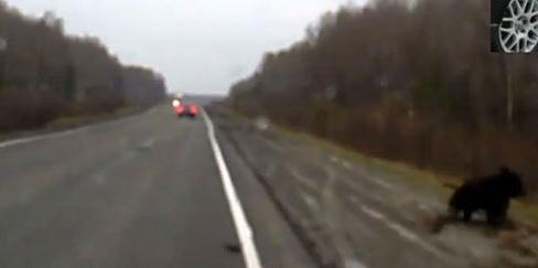 ВИДЕО: Автомобил удри мечка, таа стана и избега!