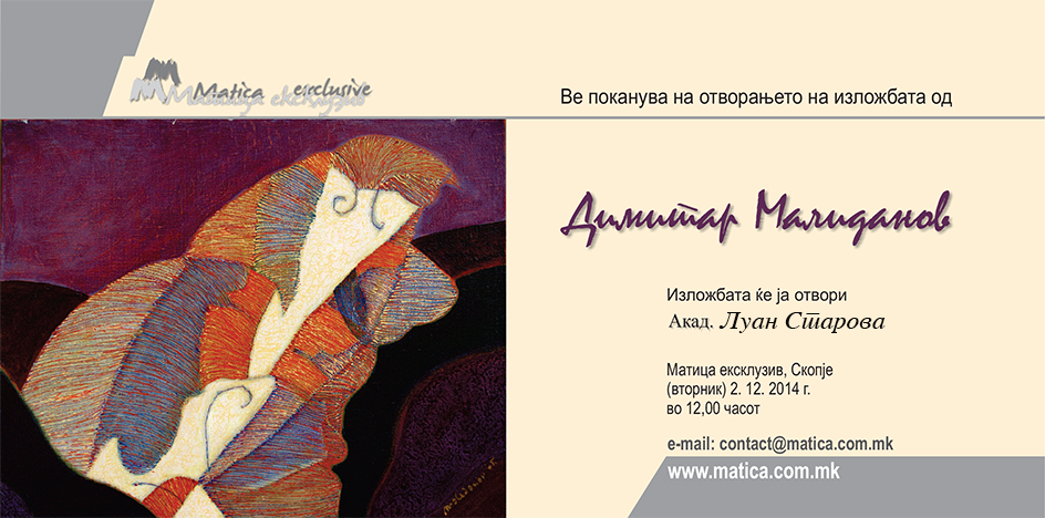 Во Мултимедијалниот центар „Матица ексклузив“ на 2 декември (вторник) во 12 часот ќе биде отворена изложбата на академскиот сликар Димитар Малиданов. Познатиот уметник ќе се претстави со триесет и пот […]