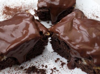 Потребни состојки:-2 поголеми банани-1 лажица мед-1 лажица кисело млеко-1 лажица какао-100 г кокосово брашно-1 пециво-2 јајца-1 ванилаГлазура:-200 г чоколадо за готвење-малку млеко Начин на подготовка:Изматете ги белките во цврст снег, […]