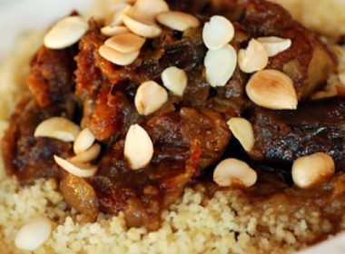 Потребни состојки: -3 лажици маслиново масло -2 главици црвен кромид -1,5 лажица куркума -1 лажица ѓумбир -2 лажички цимет -1 кг јагнешко -250 г суви урми -1 лажица мед Дополнително: […]